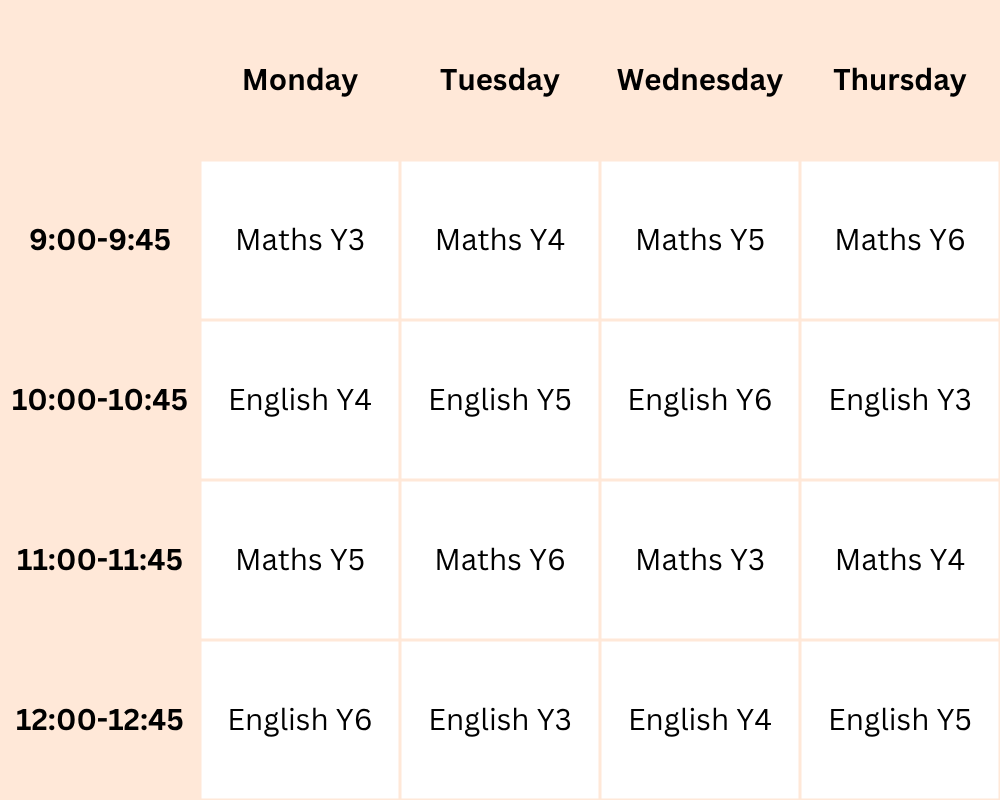 At Annie’s Tutoring, my homeschooling timetable provides a clear, structured routine that follows the national curriculum, helping children learn confidently from home while staying at the same standard as their peers. Each weekly timetable includes English and Maths, all taught in small, supportive online lessons. Other areas of the curriculum in incorporated within the English and Maths lessons.